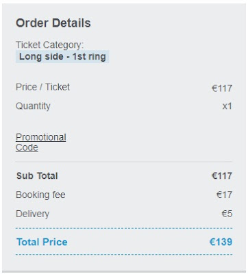 Wejściówki na spotkanie dostępne są obecnie za pośrednictwem rynku wtórnego. Za bilet z wszelkimi opłatami zapłacimy około 139 EUR (ok. 598 zł) REZERWUJ====>