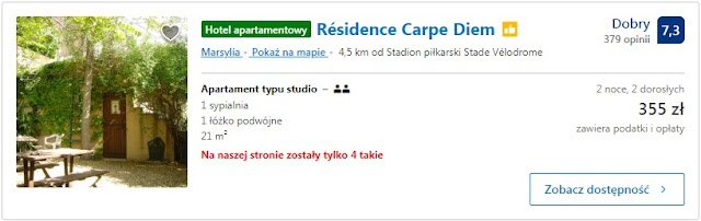 Oferujemy dwa obiekty noclegowe nieopodal stadionu Orange Velodrome. Tańszy z nich – Jolie Chambre Privée Marseille 9e za 261 zł (66 zł/os/doba) oraz nieco droższą opcję, z większą ilością udogodnień – Residence Carpe Diem za 355 zł (89 zł/os/doba).