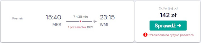 Podróż powrotną zaplanujmy dzień po spotkaniu 09.02, z Marsylii dostaniemy się wówczas do portu Warszawa Modlin z przesiadką w Mediolanie Bergamo, a wszystko to w cenie 142 zł REZERWUJ====>