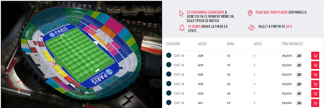 Wejściówki dostępne są za pośrednictwem oficjalnej strony internetowej Paris Saint-Germain. Do zakupu biletów niezbędna jest darmowa rejestracja, a kupione bilety dostaniemy drogą mailową. Najtańsze z wejściówek wraz z opłatami kosztują około 28,32€ (ok. 122 zł) REZERWUJ====>