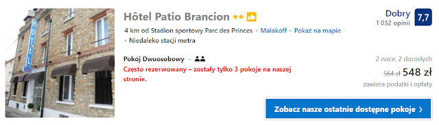 Oferujemy dwudniowy pobyt w Hôtel Patio Brancion. Koszt noclegu dla jednej i dwóch osób wynosi kolejno 464 zł* oraz 568 zł* (142 zł os./noc).