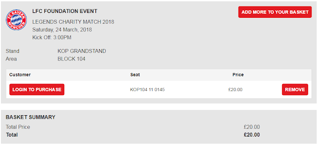 Bilety kupimy na oficjalnej stornie Liverpoolu REZERWUJ====>. Ceny biletów dla osoby dorosłej to 20 GBP (ok. 94 zł). O szczegółach samego meczu więcej dowiemy się z oficjalnej strony fundacji Liverpoolu TUTAJ====>