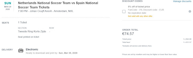 Mecz odbędzie się 29 marca 2020 o 19:00 na Johan Cruyff ArenA w Amsterdamie.