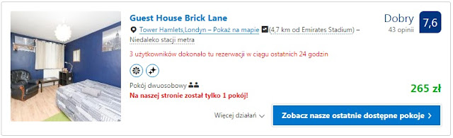 W kontekście noclegu polecamy dwa miejsca, Haringey Victorian House, gdzie za jedną noc dla dwóch osób zapłacimy 241 zł (121 zł/os/noc). Inna możliwość to pobyt w Guest House Brick Lane, za który zapłacimy 265 zł (132 zł/os/noc).