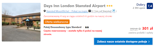 Zalecamy kwatery znajdujące się nieopodal obu londyńskich lotnisk. Znajdujący się 5 km od portu lotniczego Stansted, obiekt Days Inn London Stansted Airport oferuje nocleg w kwocie 314 zł dla jednej oraz 301 zł za dwie osoby (150,5 zł os./noc).
