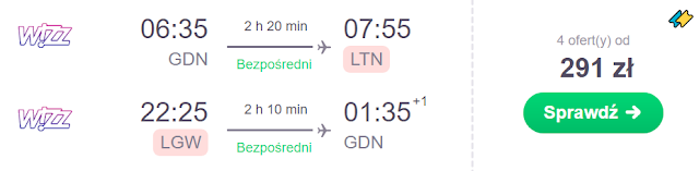 Wyjazd do Londynu planujemy w terminie 16-18 sierpnia. Za lot w obie strony z Gdańska zapłacimy 229 zł* (cena regularna 291 zł) REZERWUJ====>, Szczecina 366 zł REZERWUJ====>, Bydgoszczy 384 zł REZERWUJ====> oraz Warszawy 462 zł* (cena regularna 548 zł) REZERWUJ====>.