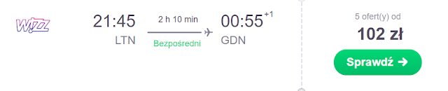 Z Londyn Luton wrócimy do Olsztyna za 75 zł* (cena regularna 99 zł) REZERWUJ====>, Gdańska za 95 zł* (cena regularna 102 zł) REZERWUJ====> i Bydgoszczy za 105 zł REZERWUJ====>.