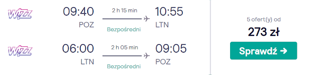 Wycieczkę do stolicy Anglii planujemy w dniach 22-24 listopada. Do Londynu wraz z powrotem dostaniemy się z Poznania za 149 zł* (cena regularna 273 zł) REZERWUJ====>, Gdańska za 150 zł REZERWUJ====>, Krakowa za 192 zł REZERWUJ====>, Bydgoszczy za 269 zł REZERWUJ====>, Wrocławia za 279 zł REZERWUJ====>, Katowic za 293 zł REZERWUJ====> oraz Warszawy Modlin za 293 zł REZERWUJ====>.