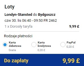 Do Londynu najtaniej w dniu meczu (29.11) polecimy z Poznania linią Ryanair (19zł) REZERWUJ====>lub z Gdańska linią Wizzair (39zł*, cena regularna 84zł) REZERWUJ====>. Tani przelot także z podwarszawskiego Modlina linią Ryanair (39zł) REZERWUJ====>. Powrót dzień po meczu (30.11) linią Wizzair do Gdańska (44zł*, cena regularna 89zł) REZERWUJ====> lub linią Ryanair do Poznania (17,59£ = ok. 85zł) REZERWU====>. Tania opcja powrotu także linią Ryanair do Bydgoszczy (ok. 49zł) REZERWUJ====>.