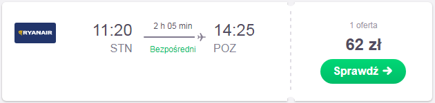 Wracamy dzień po meczu 26.09 z Londynu Stansted do Szczecina za 48 zł REZERWUJ====> lub do Poznania za 62 zł REZERWUJ====> czy do Warszawy Modlin za 62 zł REZERWUJ====> a także do wielu innych polskich miast REZERWUJ====>
