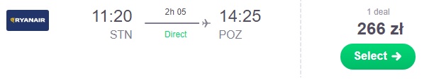 Powrót planujemy dzień po meczu 2.04 ze Stansted do Gdańska za 214 zł REZERWUJ ==== >, Warszawy za 218 zł REZERWUJ ==== > lub Poznania za 266 zł REZERWUJ ==== >