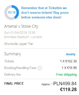 Najtańsze pojedyncze bilety dostanie na rynku wtórnym za ok 500 zł. Warto pamiętać, że bilet może być dostarczony tylko na terenie UK, w związku z czym należy uprzedzić hotel o nadejściu przesyłki, bądź znajomego u którego będziemy nocować podczas pobytu w Anglii. Uwaga! Nie przechodzimy na polską wersję (Stubhub) a pozostajemy w angielskiej wersji strony (ticketbis.net) – znajdziemy tam zdecydowanie tańsze bilety! REZERWUJ ==== >