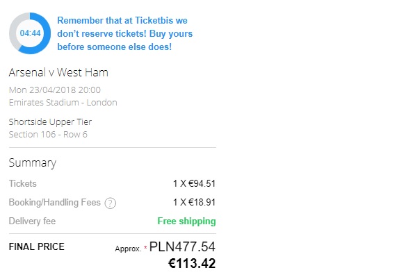 Najtańsze pojedyncze bilety dostanie na rynku wtórnym za ok 478 zł. Bilet dostaniemy w formie elektronicznej. Uwaga! Nie przechodzimy na polską wersję (Stubhub) a pozostajemy w angielskiej wersji strony (ticketbis.net) – znajdziemy tam zdecydowanie tańsze bilety! REZERWUJ ==== >
