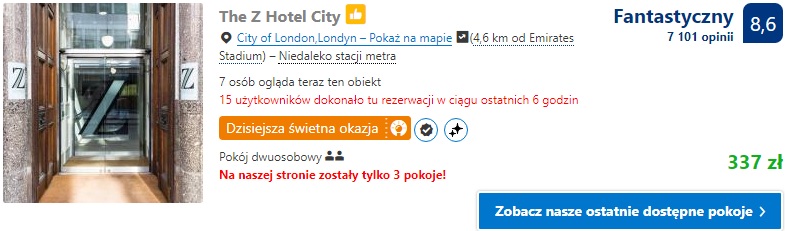 Proponujemy nocleg w obiekcie położonym niedaleko stadionu. Za noc w pokoju dwuosobowym w The Z Hotel City zapłacimy 337 zł ( ok. 169 zł os./noc)