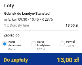 Do Londynu lecimy w dniu meczu (5.04) z Gdańska linią Ryanair. Bilet kosztuje 13zł REZERWUJ====>. Powrót dnia następnego (6.04) do Szczecina linią Wizzair za 36,49£* (ok.182zł) REZERWUJ====>.