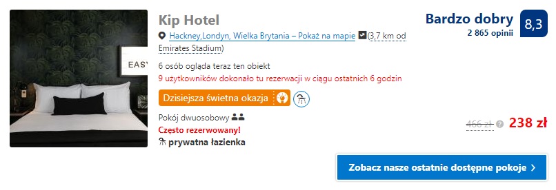 Proponujemy nocleg w dwóch obiektach położonych niedaleko stadionu. Pierwszym jest Kip Hotel gdzie za noc w pokoju dwuosobowym zapłacimy 238 zł( 119 zł/os./noc). Drugim obiektem jest Five Kings Hotel, który położony jest bliżej stadionu ale posiada gorszą ocenę klientów. Za noc w tym obiekcie, w pokoju dwuosobowym ze śniadaniem zapłacimy 243 zł (ok. 122 zł/os./noc).