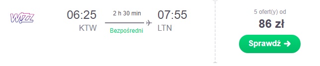 Proponujemy powrót dzień po meczu z Londyn Luton do Gdańska za 52 zł* (cena regularna 89 zł) REZERWUJ ==== >, do Warszawy za 49 zł* (cena regularna 86 zł) REZERWUJ ==== > , lub do Katowic za 52 zł* (cena regularna 89 zł) REZERWUJ ==== >
