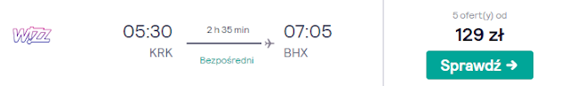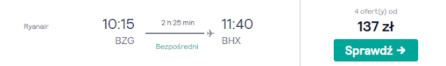 Do portu lotniczego w Birmingham dotrzemy w dniu meczu z Krakowa za 86 zł* (cena regularna 129 zł) REZERWUJ====> lub Bydgoszczy za 137 zł REZERWUJ====>.