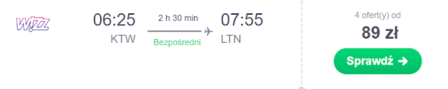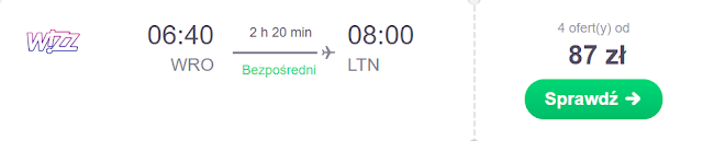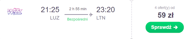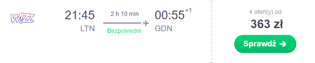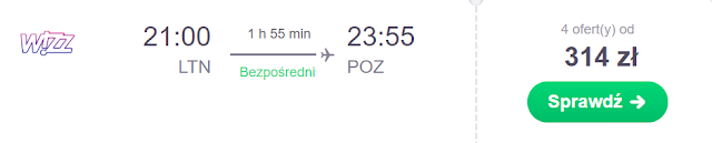 Lot do Polski rezerwujemy na 17 grudnia. Za powrót z Londyn Luton do Gdańska zapłacimy 253 zł* (cena regularna 363 zł) REZERWUJ====>, zaś do Poznania 277 zł* (cena regularna 314 zł) REZERWUJ====>.