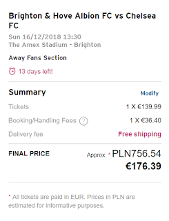 Mecz Brighton & Hove Albion FC – Chelsea FC zostanie rozegrane 16 grudnia o godzinie 13.30 czasu lokalnego na Falmer Stadium.