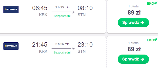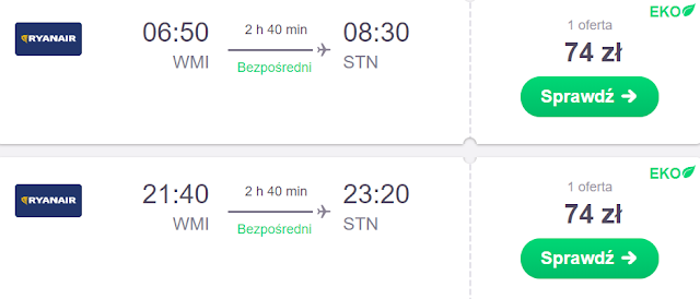 Natomiast do Londyn Stansted dotrzemy ze Szczytna za 50 zł REZERWUJ====>, Łodzi za 67 zł REZERWUJ====>, Warszawy Modlin za 74 zł REZERWUJ====> oraz Krakowa za 89 zł REZERWUJ====>.