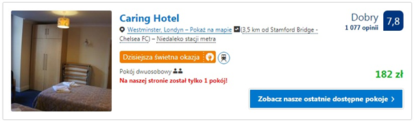 Nocleg proponujemy w położonych niedaleko Stamford Bridge w Hammersmith Lifestyle gdzie za noc dla dwóch osób zapłacimy 179 zł (89,5zł/os/noc). Inną, nieco droższą opcją jest Caring Hotel, tam jedna noc dla dwóch osób to koszt 182 zł (91 zł/os/noc).