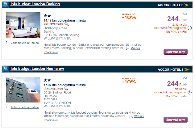 Hotelowe standardy mogą zapewnić Hotele znajdujące się w nieco dalszej odległości od centrum Londynu. Ceny za pokoje dwuosobowe zaczynają się już od 214 zł.