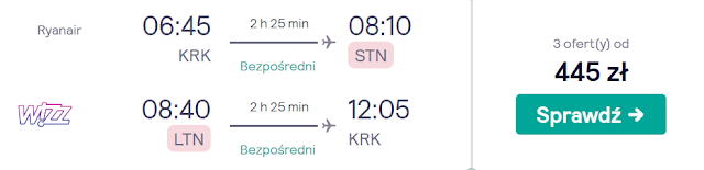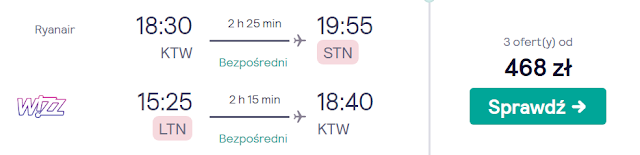 Podróż na Wyspy Brytyjskie planujemy w dniach 13-15 grudnia. Do Londynu wraz z powrotem dolecimy z Gdańska za 248 zł* (cena regularna 311 zł) REZERWUJ====>, Poznania za 278 zł* (cena regularna 354 zł) REZERWUJ====>, Katowic za 437 zł* (cena regularna 468 zł) REZERWUJ====> oraz Krakowa za 445 zł REZERWUJ====>.