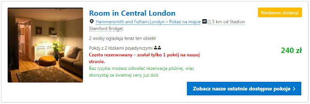 W sprawie pobytu na jedną noc proponujemy dwa miejsca położone nieopodal Stamford Bridge. Za Room in Central London zapłacimy 240 zł (120 zł/os/noc), natomiast niewiele droższy będzie pobyt w Abercorn House za 245 zł (123 zł/os/noc).