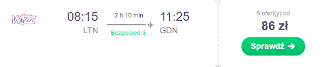 Lot powrotny do Polski planujemy na 3 stycznia. Z portu lotniczego Londyn Luton dotrzemy do Poznania za 43 zł* (cena regularna 67 zł) REZERWUJ====>, Gdańska za 50 zł* (cena regularna 86 zł) REZERWUJ====> i Katowic za 74 zł* (cena regularna 110 zł) REZERWUJ====>.