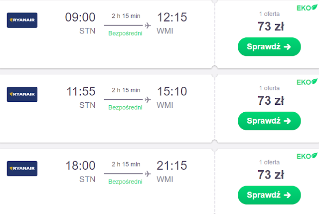 Natomiast z Londyn Stansted wrócimy do Wrocławia za 67 zł REZERWUJ====> i Warszawy Modlin za 73 zł REZERWUJ====>.