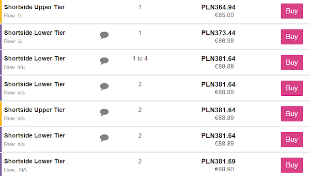 Wejściówki zalecamy nabyć z rynku wtórnego. Najtańsze bilety kosztują 103,28 EUR (ok. 443 zł) REZERWUJ====>.