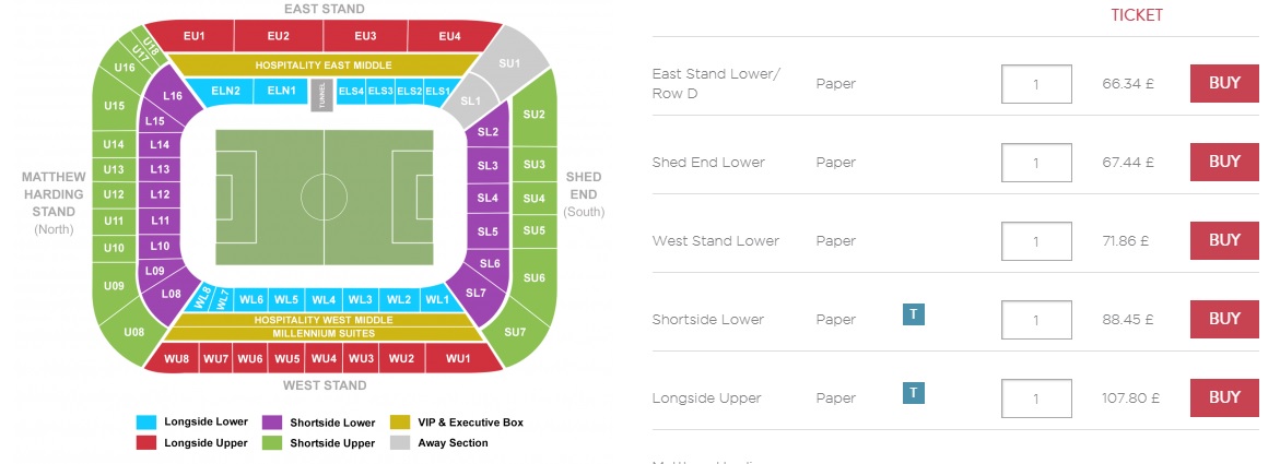 Na chwilę obecną bilety zakupimy wyłącznie na rynku wtórny. Ceny wejściówek wraz z opłatą rezerwacyjną zaczynają się od 90,68£ (ok. 444 zł) REZERWUJ====>. Być może bilety pojawią się na stronie Chelsea w późniejszym terminie.