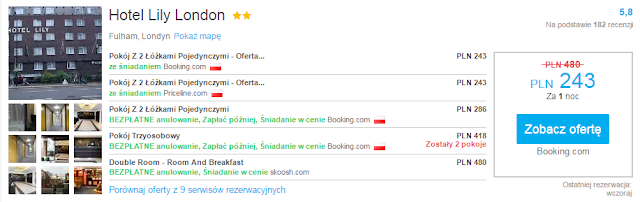 Hotel Lily w dzielnicy Fulham, która graniczy z Chelsea i jest stąd bardzo blisko do stadionu gdzie pokój dwuosobowy znajdziemy w granicach 243 zł (ok 120 zł za osobę za dobę) zarezerwuj TUTAJ====>