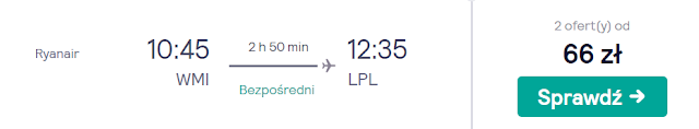 Liverpool opuszczamy następnego dnia wylatując do Katowic za 59 zł* (cena regularna 87 zł) REZERWUJ====>, Wrocławia za 66 zł REZERWUJ====> oraz Warszawy za 89 zł* (cena regularna 109 zł) REZERWUJ====>.