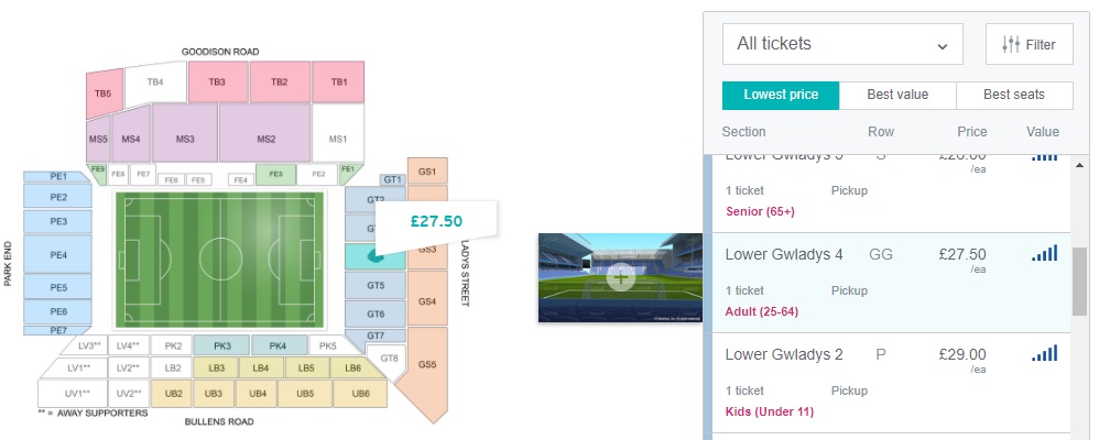 Najtańsze bilety na chwilę obecną dostaniemy na rynku wtórnym. Niewykluczone, że wejściówki pojawią się w sprzedaży na oficjalnej stronie Evertonu (na chwilę obecną brak informacji). Za najtańszy bilet zapłacimy już od ok. 33£ ( ok. 159 zł) REZERWUJ ==== >. Bilety będą do odbioru pod stadionem w dniu meczu.