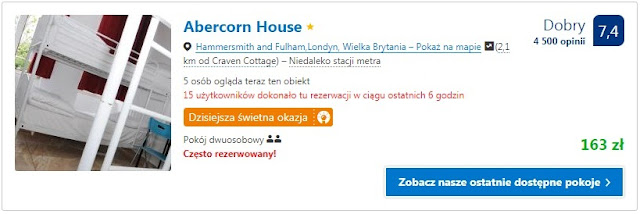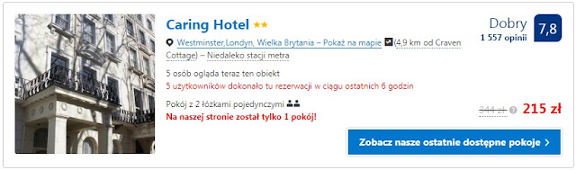 W przypadku chęci pozostania w Londynie dłużej, proponujemy nocleg na jedną noc dla dwóch osób w Abercorn House za 163 zł (82 zł/os/noc) lub w Caring Hotel za 215 zł (108 zł/os/noc).