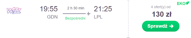 Inną opcją jest wylot dzień wcześniej. Za połączenia z Gdańska i Warszawy Modlin zapłacimy kolejno 104 zł* (cena regularna 130 zł) REZERWUJ====> i 110 zł REZERWUJ====>.