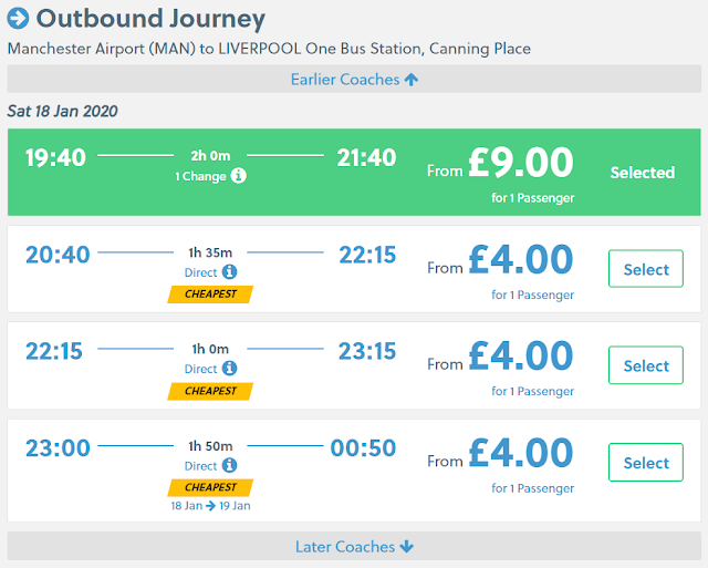 Natomiast z portu lotniczego w Manchesterze do centrum Liverpoolu dotrzemy dzięki liniom autobusowym National Express już od 5 GBP (ok. 25 zł) REZERWUJ====>. W cenę wliczono już opłatę rezerwacyjną.