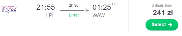 Wylot powrotny możemy zaplanować w dniu meczu do Warszawy za 209 zł* (cena regularna 241 zł) REZERWUJ ==== >lub dzień po meczu do Warszawy za 126 zł REZERWUJ ==== > lub Gdańska za 166 zł* (cena regularna 199 zł) REZERWUJ ==== >