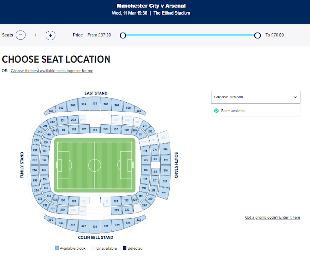 Bilety możemy zakupić na oficjalnej stronie Manchesteru City. Najtańsze wejściówki to koszt 51.50 GBP (ok. 268 zł) REZERWUJ====>. Na ten moment jest jeszcze wiele dostępnych miejsc w różnych sektorach i bez żadnego problemu w kilka osób można będzie usiąść obok siebie.