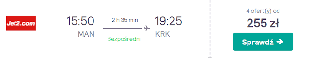 Zalecamy wylot dzień przed wydarzeniem – 22 listopada. Do Manchesteru dolecimy bezpośrednio z Krakowa za 161 zł REZERWUJ====>.