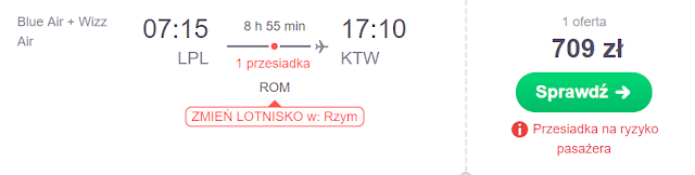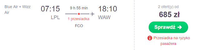 Dla pozostałych chętnych oferujemy połączenia z Liverpoolu 16 grudnia do Warszawy (z przesiadką w Rzym Fiumicino) za 685 zł REZERWUJ====> oraz Katowic (z przesiadką w Rzymie) za 709 zł REZERWUJ====>.