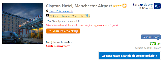 Proponujemy obiekty oddalone nieznacznie od newralgicznych miejsc. Dla kibiców, którzy pozostaną w Manchesterze w dniach 14-16 grudnia oferujemy Park View Residence, który znajduje się od Etihad Stadium o niecałe cztery kilometry. Kosz noclegu wynosi 703 zł za pokój dwuosobowy (176 zł os./noc). Dla tych co wolą pobyt bliżej lotniska w Manchesterze proponujemy Clayton Hotel, Manchester Airport. Za pobyt zapłacimy w pokoju dwuosobowym zapłacimy 778 zł (195 zł os./noc)