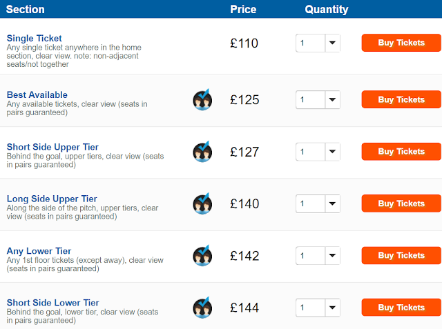 Bilety na ten mecz dostępne są wyłącznie na rynku wtórnym. Ceny wejściówek wraz z opłatą manipulacyjną wynoszą 138 GBP (ok. 693 zł ) REZERWUJ====>.