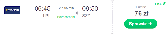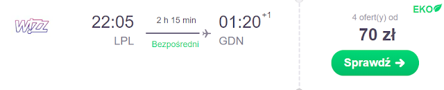 Tańszym rozwiązaniem będzie wylot z Liverpoolu, z którego dolecimy do Gdańska za 45 zł* (cena regularna 70 zł) REZERWUJ====>, Szczecina za 76 zł REZERWUJ====> oraz Wrocławia za 100 zł REZERWUJ====>.