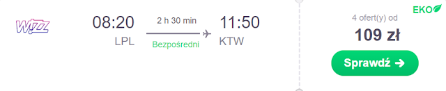 Do kraju możemy wrócić tego samego dnia z lotniska w Liverpoolu. Do Krakowa dolecimy za 64 zł REZERWUJ====>, Poznania za 64 zł REZERWUJ====>, Katowic za 74 zł* (cena regularna 109 zł) REZERWUJ====> i Wrocławia za 84 zł REZERWUJ====>.