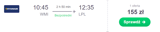Innym rozwiązaniem pozostają połączenia Gdańsk – Leeds za 145 zł REZERWUJ====> oraz Warszawa Modlin – Liverpool za 155 zł REZERWUJ====>.