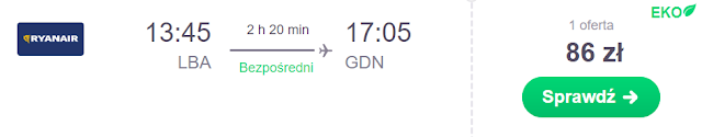 Opcjonalnym wariantem jest powrót z Leeds, z którego wrócimy do Gdańska za 86 zł REZERWUJ====> oraz Krakowa za 109 zł REZERWUJ====>.