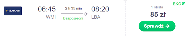 Możemy również wybrać bezpośrednie połączenie 29 września do Leeds z Warszawy Modlin za 85 zł REZERWUJ====> lub do Liverpoolu ze Szczecina za 96 zł REZERWUJ====> albo Wrocławia za 97 zł REZERWUJ====>.